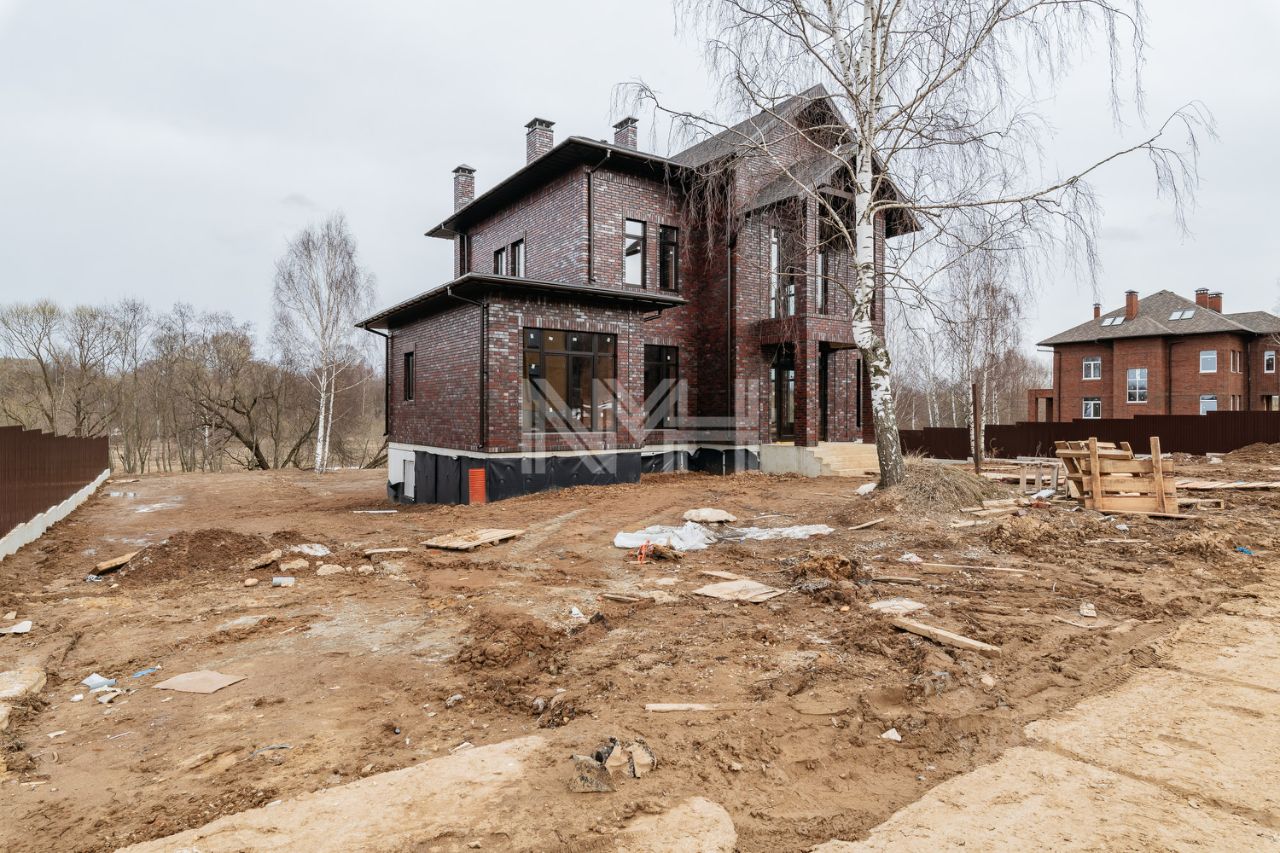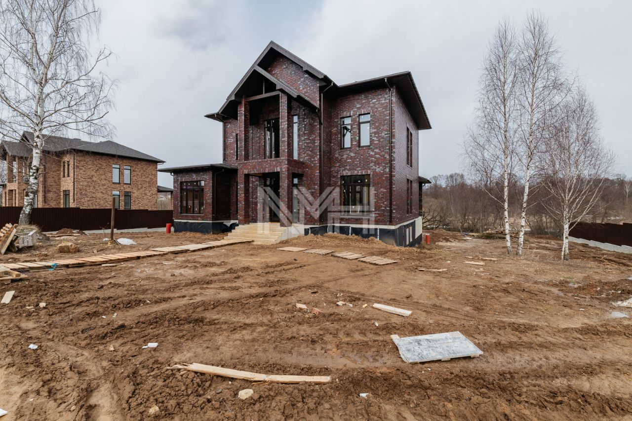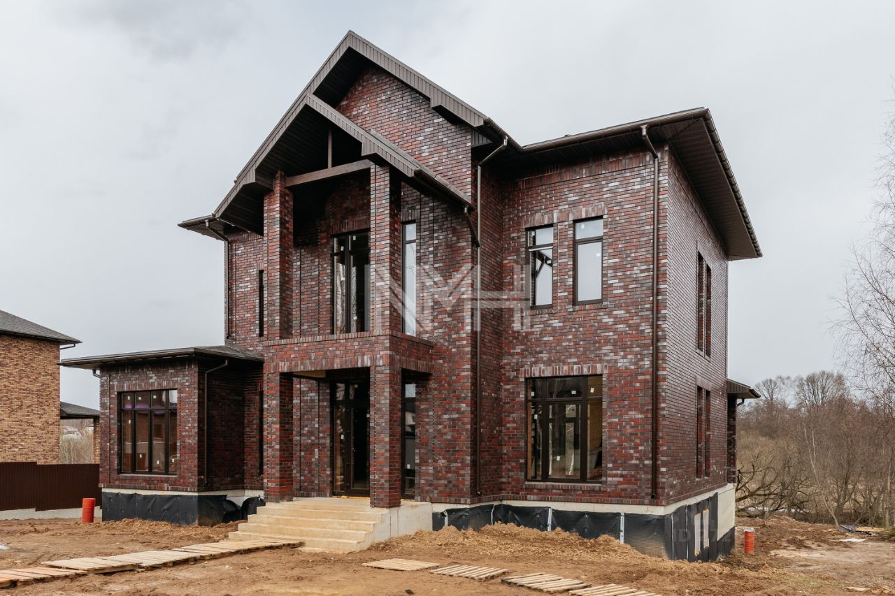 фасад выполнен под ключ, стены — керамический кирпич, утеплитель, немецкий клинкерный кирпич, перекрытия монолитные. Кровля — мягкая черепица, установлена водосточная система. Тройные стеклопакеты. Дом просторный, светлый, с высокими потолками, балконами. Высокое качество строительства.