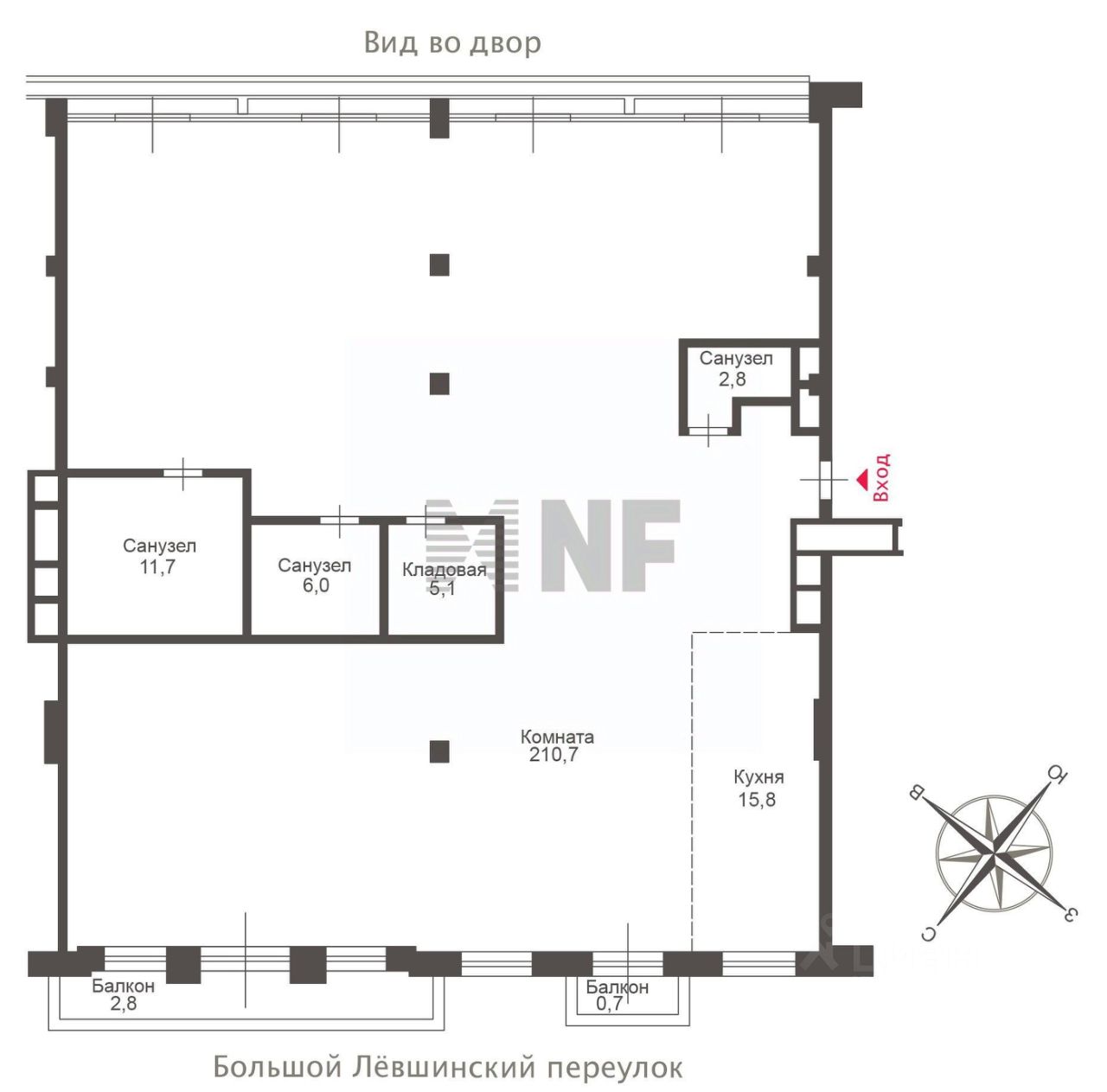 Лот: 16164. Четырехкомнатная квартира площадью 255,6 кв м расположена на третьем этаже элитного клубного дома ''Дворянское гнездо''. Планировка свободная, квартира ориентирована на две стороны, поэтому здесь можно реализовать любой авторский проект: пространство всегда будет наполнено естественным освещением. Из панорамных окон открываются виды на старинный, архитектурно выдержанный Левшинский переулок и здание МИД. С этой стороны можно спланировать просторную зону гостиной и столовой. С другой стороны окна выходят во внутренний двор с ландшафтным дизайном, что идеально для расположения спален и детских комнат. Предусмотрены три санузла и кладовая. Проведена система индивидуального кондиционирования и приточно-вытяжная вентиляция. Установлены деревянные стеклопакеты.