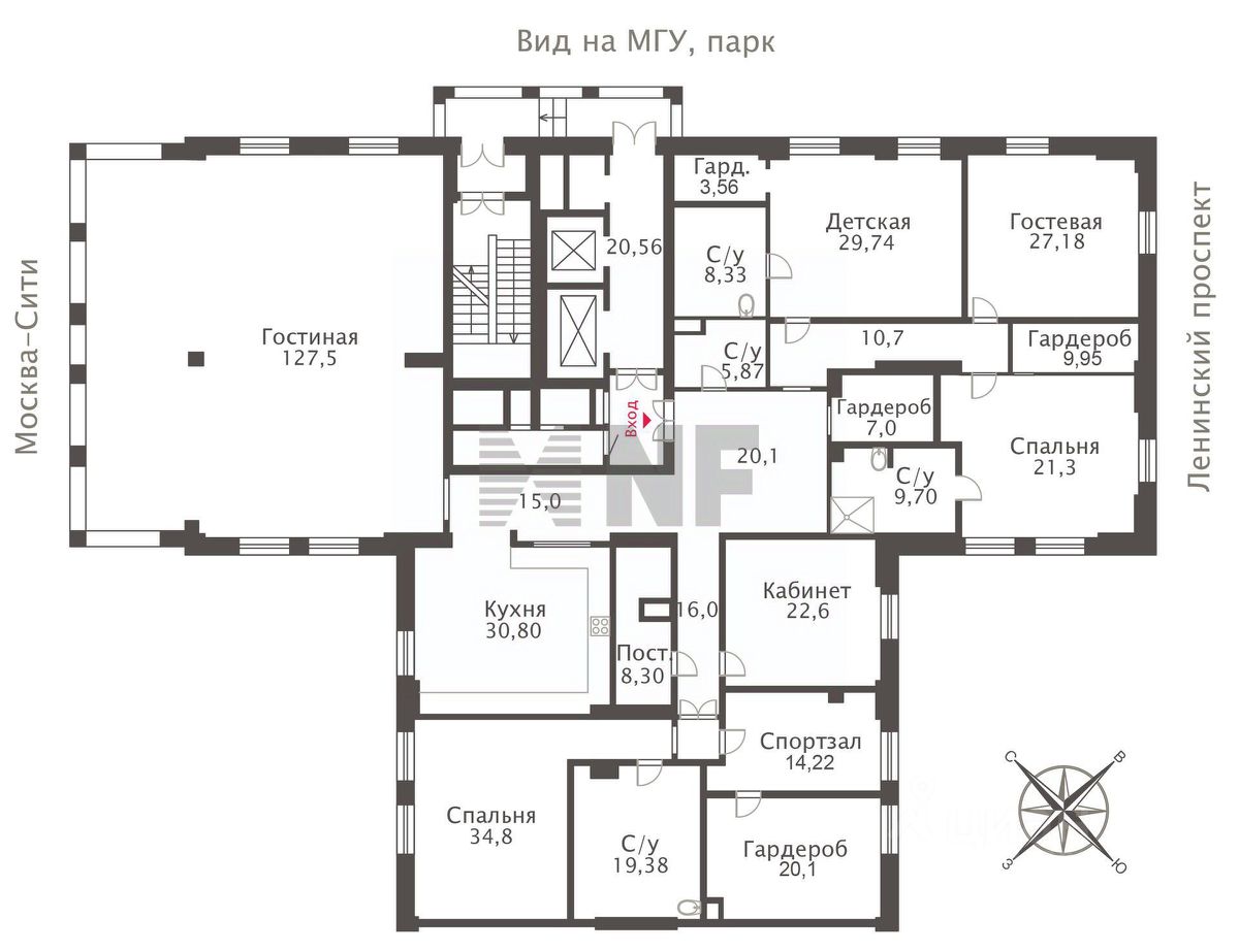 Окна ориентированы на 3 стороны: прямые виды на МГУ, ММДЦ ''Москва-Сити'' и центр города.
