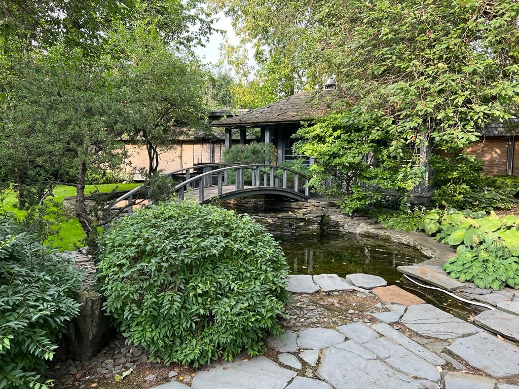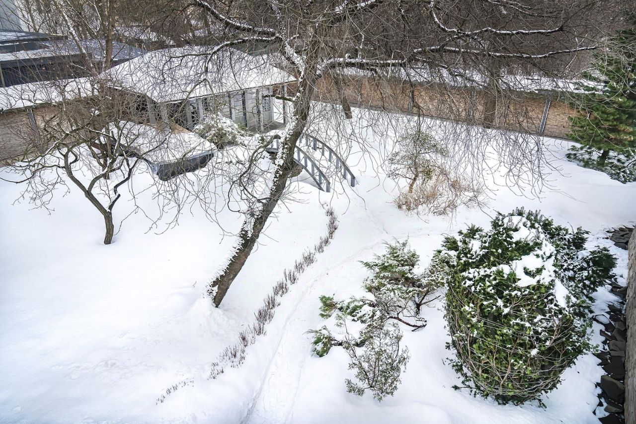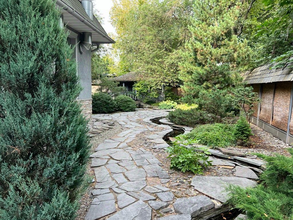 На участке разбит японский садик с зоной барбекю.