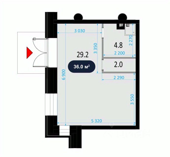 Общая площадь36 м2