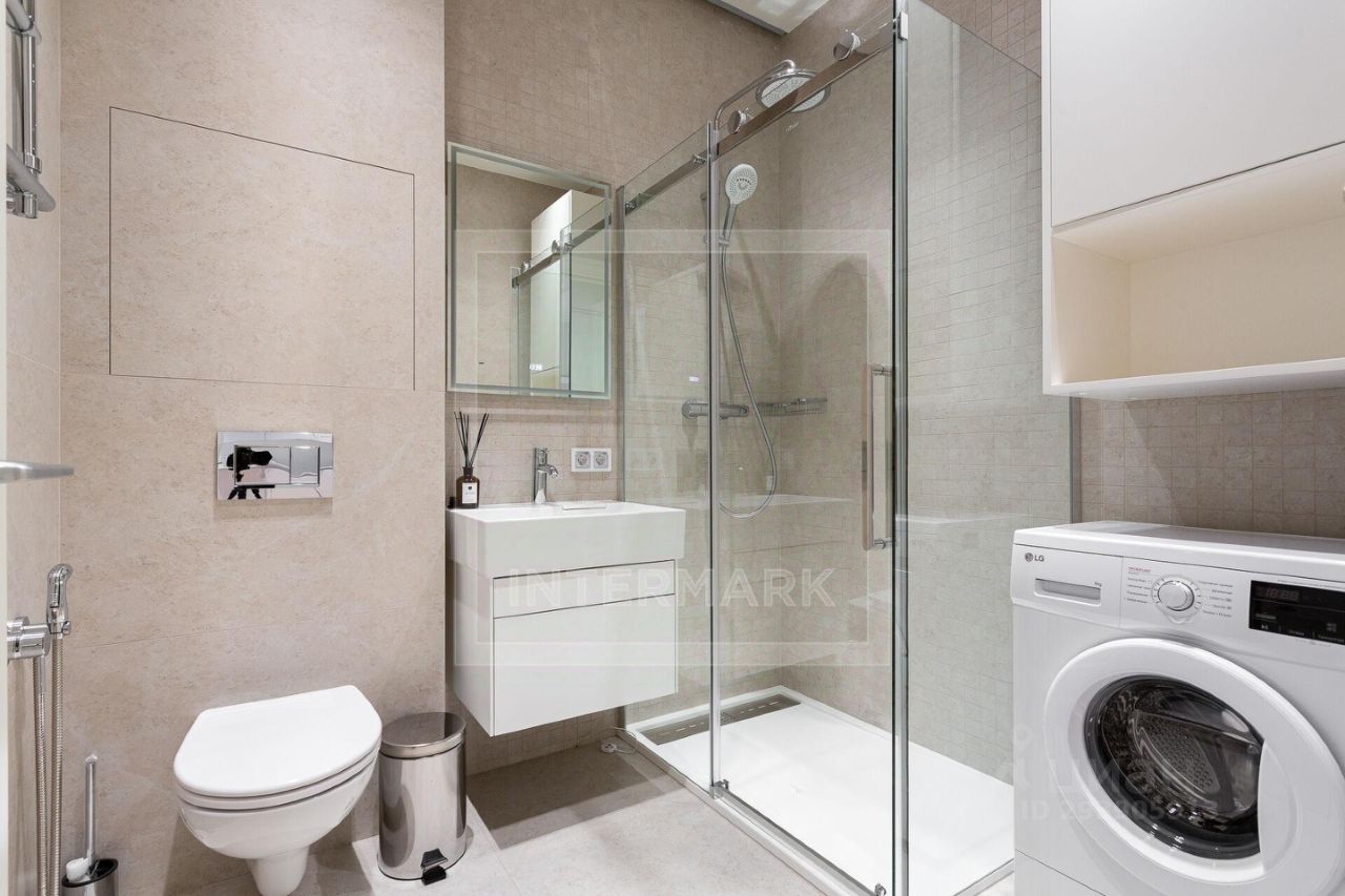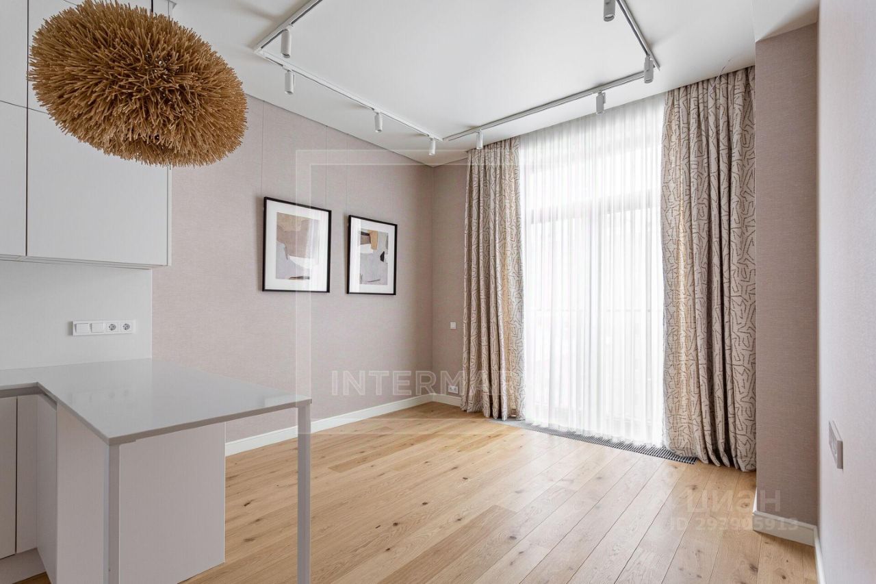 Спланированы кухня-гостиная, спальня, ванная комната с душевой кабиной, холл. Квартира невероятно уютная, очень тихая. Отделка выполнена в современном стиле в мягких оттенках. В квартире установлены система кондиционирования на базе системы VRF Фирмы ''LG'' и приточно-вытяжная система общедомовая. Сантехника Kerama Marazzi/GROHE, встроенная бытовая техника BOSCH. На полу - инженерная доска (дуб), кварцевая столешница. Полная комплектация необходимой мебелью и бытовой техникой. Большие окна открывают красивый вид в зелень ландшафтного дворика.