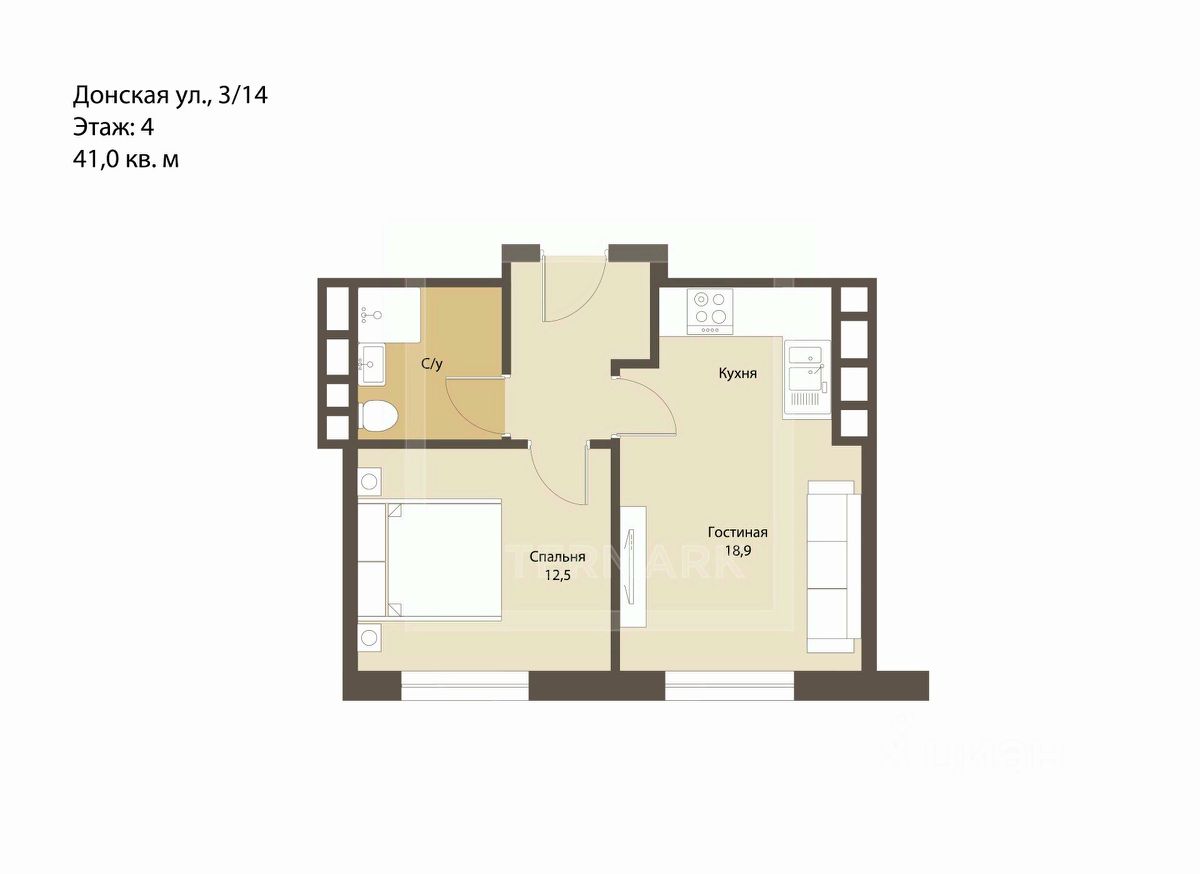 ID 64260: Эксклюзив. Только в Intermark. ЖК Медный 3.14. Готовое к проживанию предложение в ЖК Медный 3.14 в районе Шаболовской - компактная, функциональная квартира с современным интерьером площадью 41 м2.