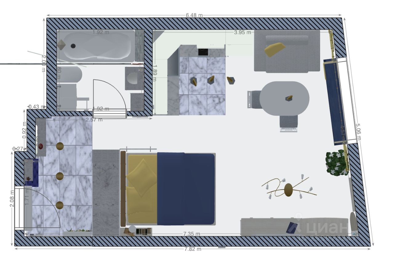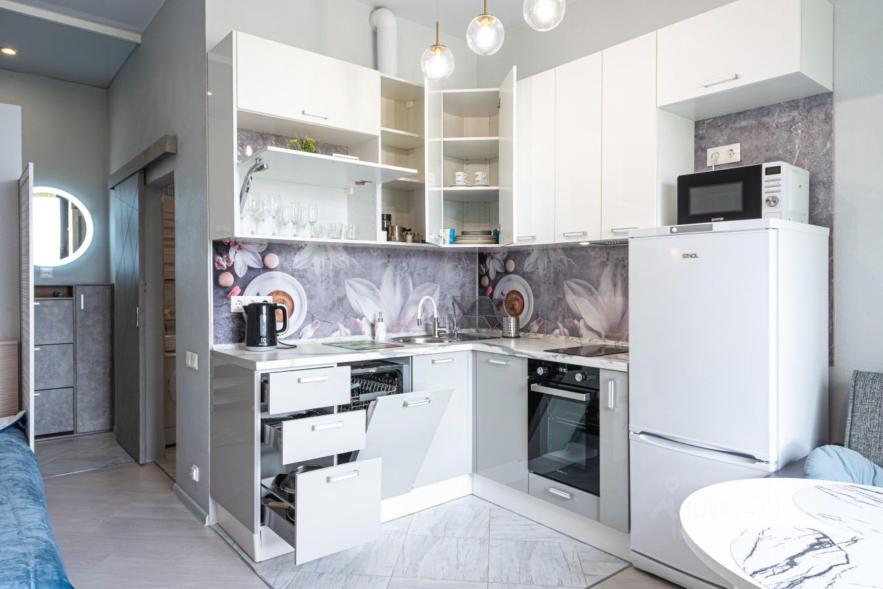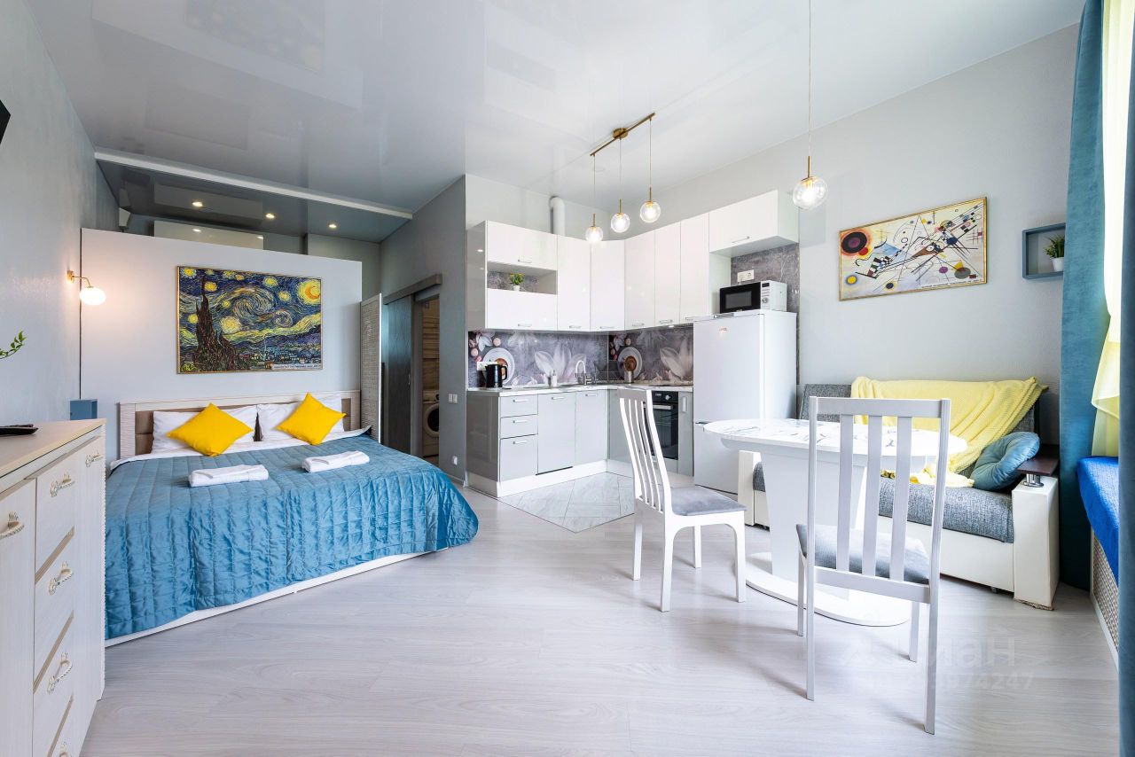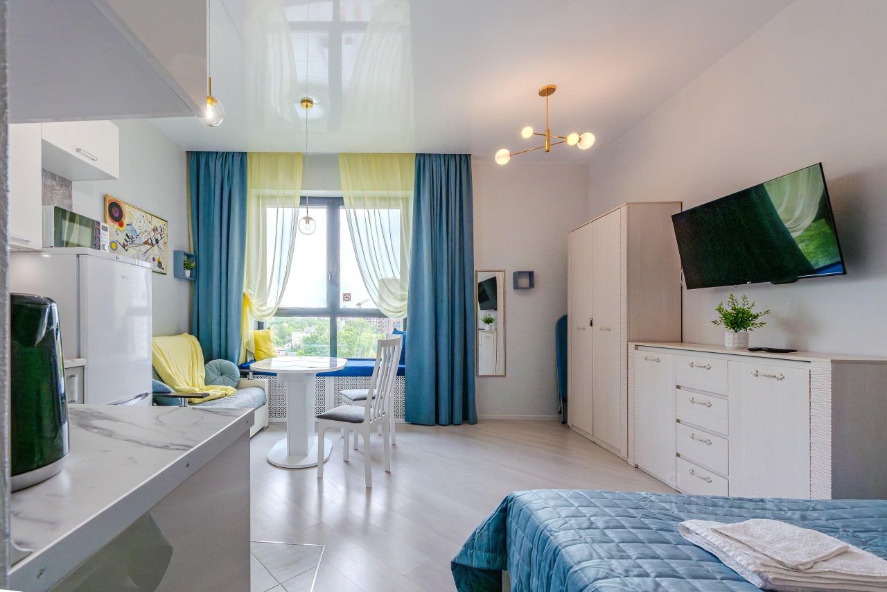 Студия создана для комфортного проживания и вмещает до 2-х человек. Полностью укомплектована всем необходимым. К вашим услугам: Wi-Fi, теплые полы, кондиционер, посудомоечная машина, стиральная машина, гейзер с питьевой водой, микроволновая печь, гладильные принадлежности, посуда и кухонная утварь.