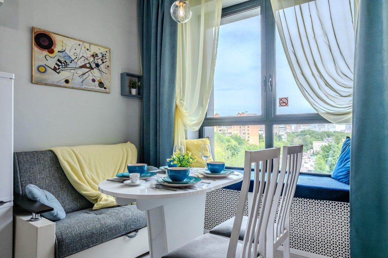 О крепком сне позаботятся большая двуспальная кровать 160 см и раскладной диван 120 см шириной. Насладиться видом можно удобно расположившись на мягком и широком подоконнике. Из окна открывается отличная панорама, над которой возвышается величественное здание МГУ.