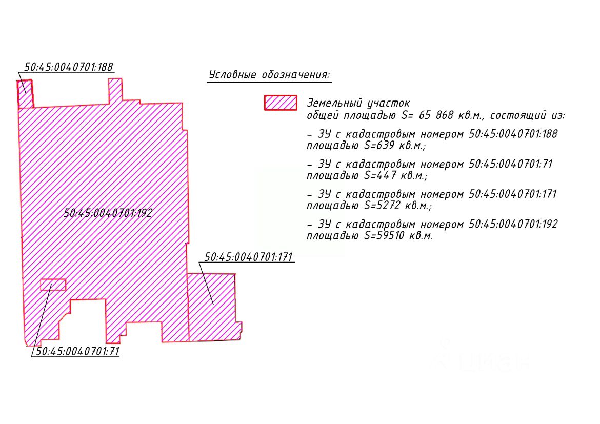 Продается земельный участок общей площадью 65 868 кв.м. состоящая из земельных участков с кадастровыми номерами: