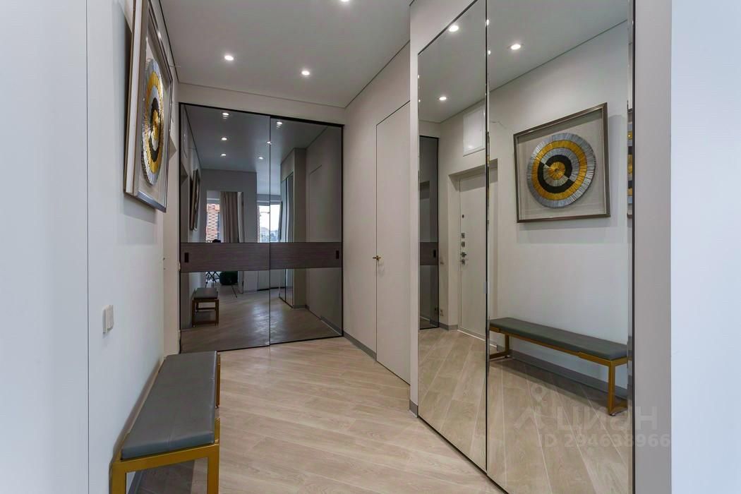 Квартира оснащена системами хранения, есть гардеробная. Кухня со встроенной бытовой техникой (духовка, варочная панель, посудомоечная машина, холодильник), сантехника премиум брендов (Германия, Швейцария), двери 2300см скрытого монтажа Union Италия.