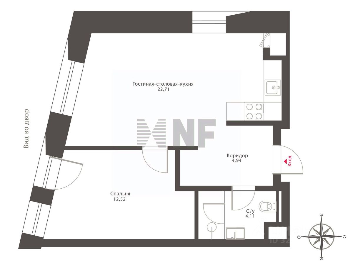 Окна выходят во двор.