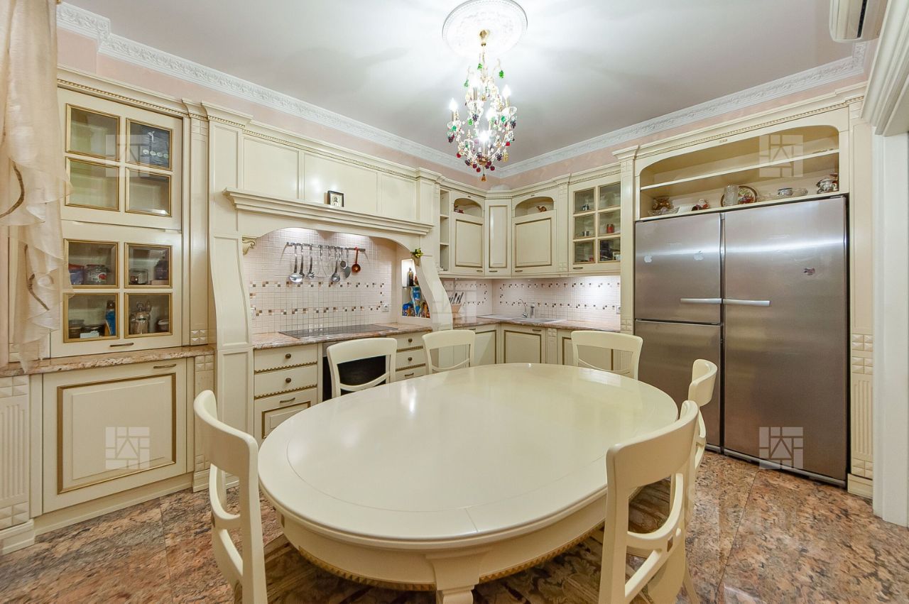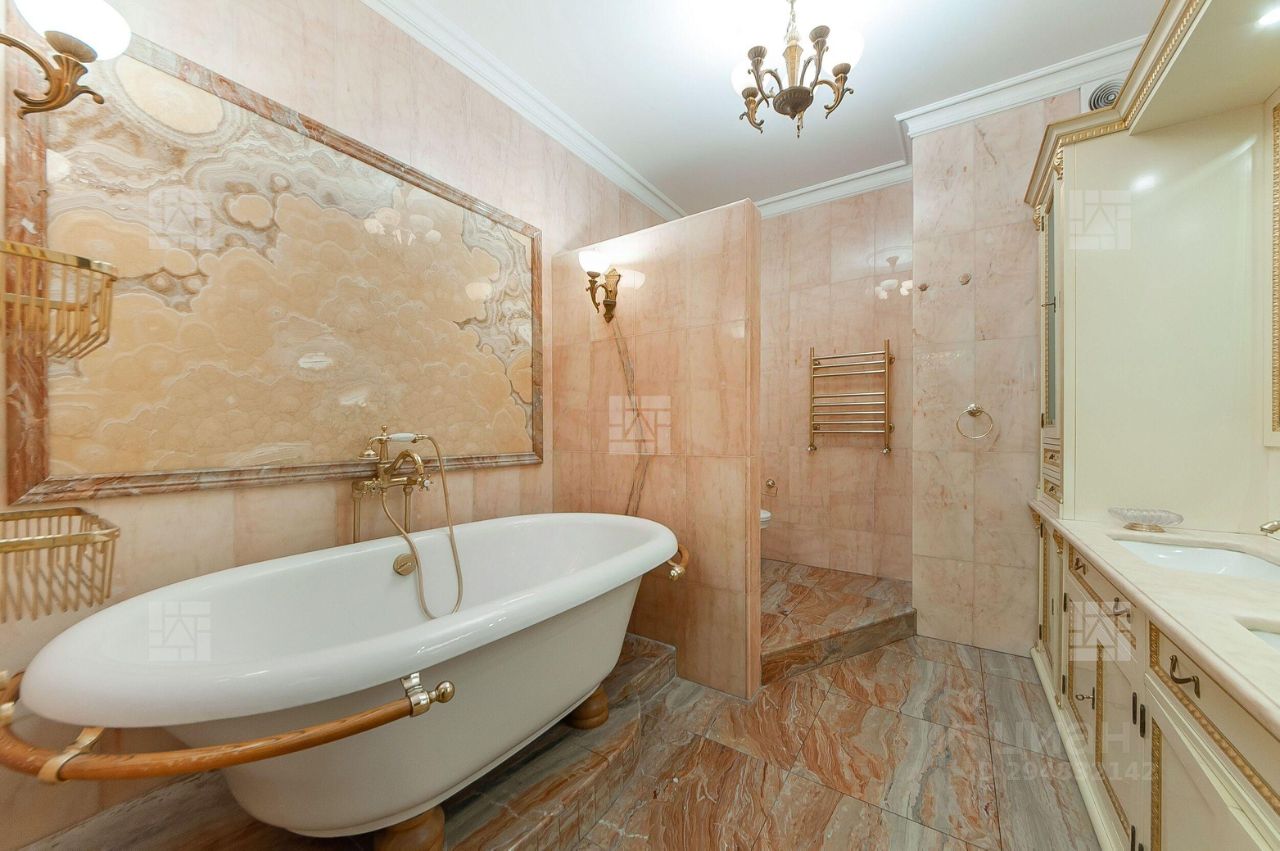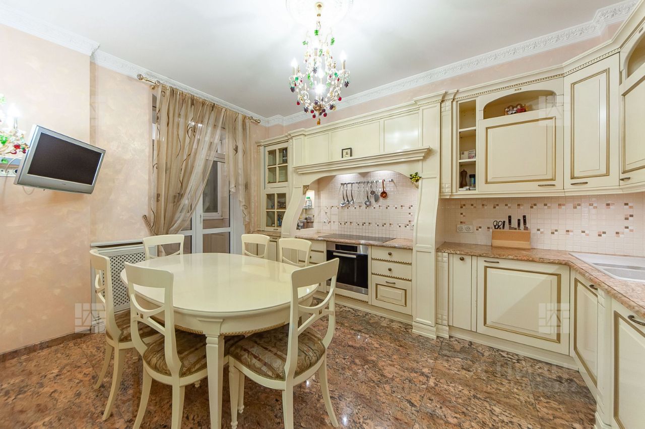 Лот: 8020. Сотрудничаем с риелторами. Бонус агенту. ЖК ''Шмитовский 16''. Предлагается элегантная квартира общей площадью 160,1 кв.м., состоящая из пяти комнат, что является редкостью в этом доме. В квартире выполнен качественный ремонт по индивидуальному дизайн проекту. Использованы качественные материалы: итальянский мрамор, паркет из американского ореха, эффектная гипсовая лепнина, сантехника премиальных марок. Квартира обставлена дизайнерской мебелью: Provasi. Franchesco Molon, кухня от известного итальянского бренда Arca Mobili. Функциональная планировка идеально подойдет для семьи с детьми: просторная гостиная с камином, отдельная кухня с застекленным балконом, четыре спальни, два санузла, гардеробная комната. Окна квартиры ориентированы на две стороны- улицу и двор.