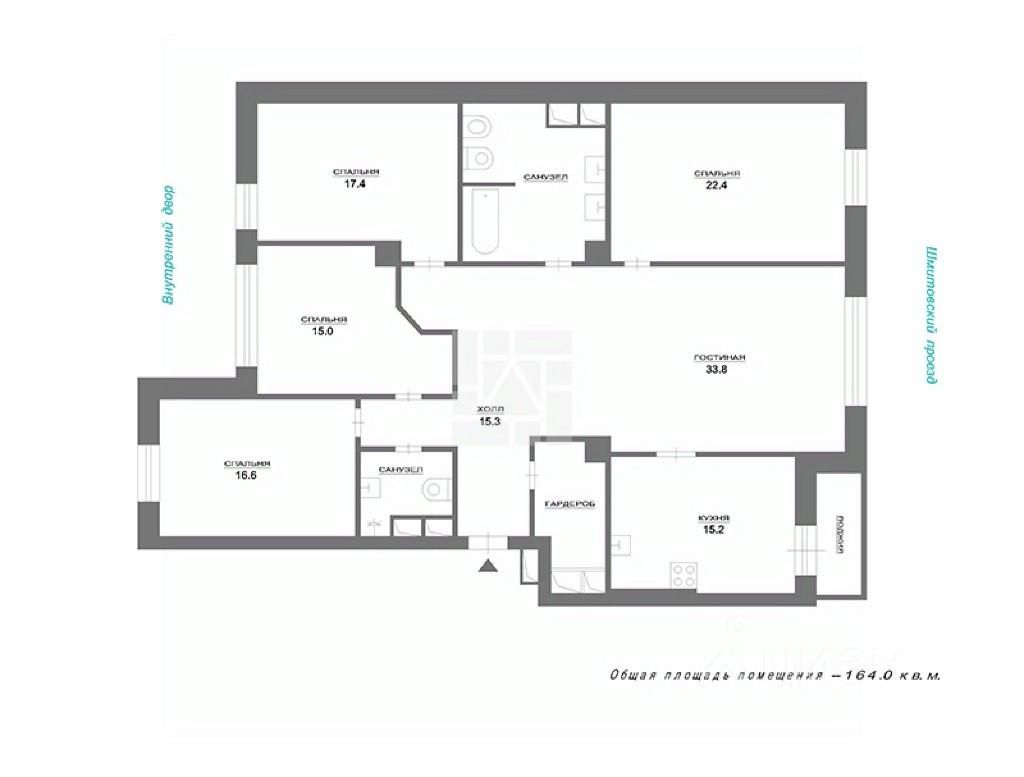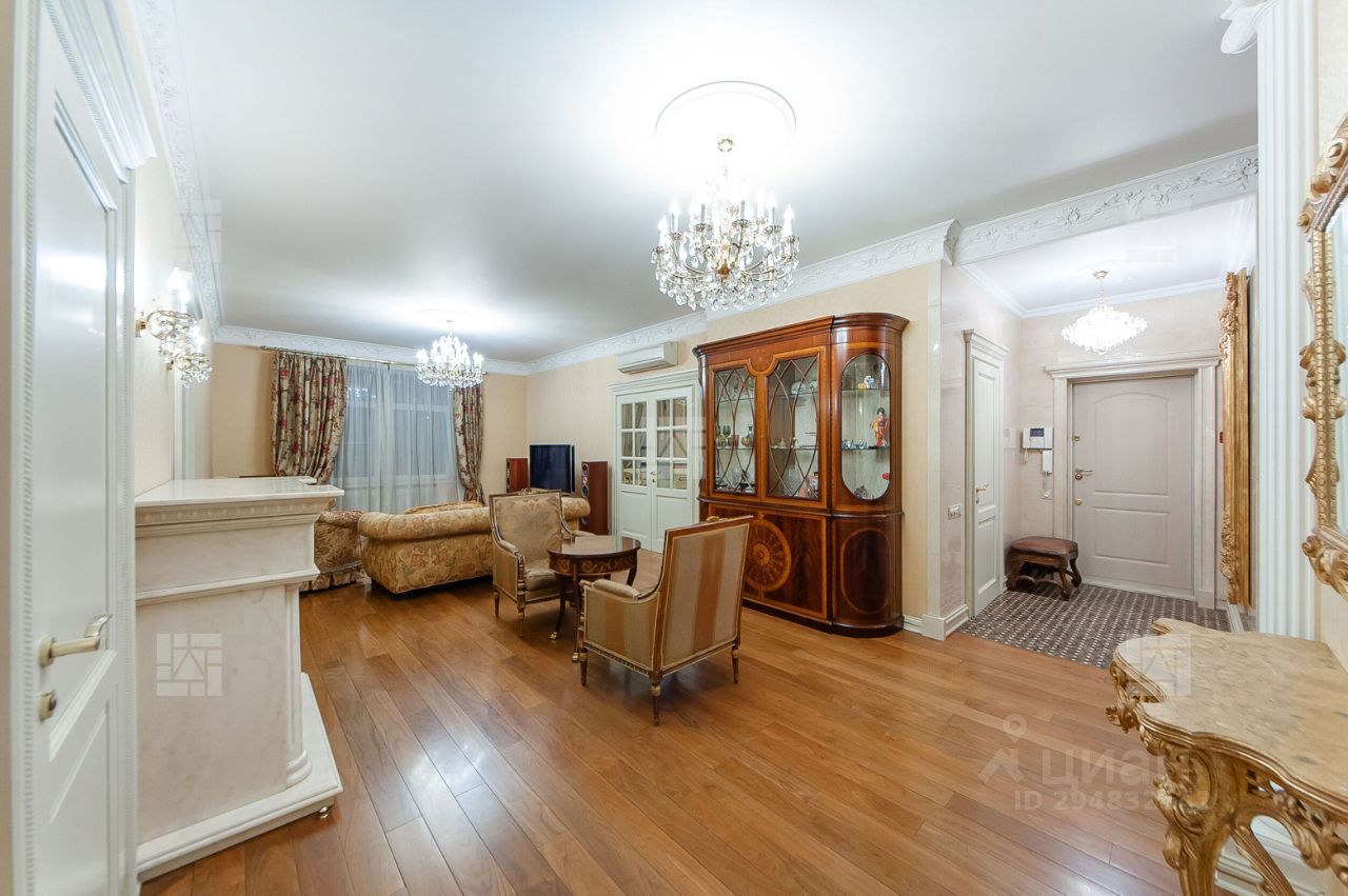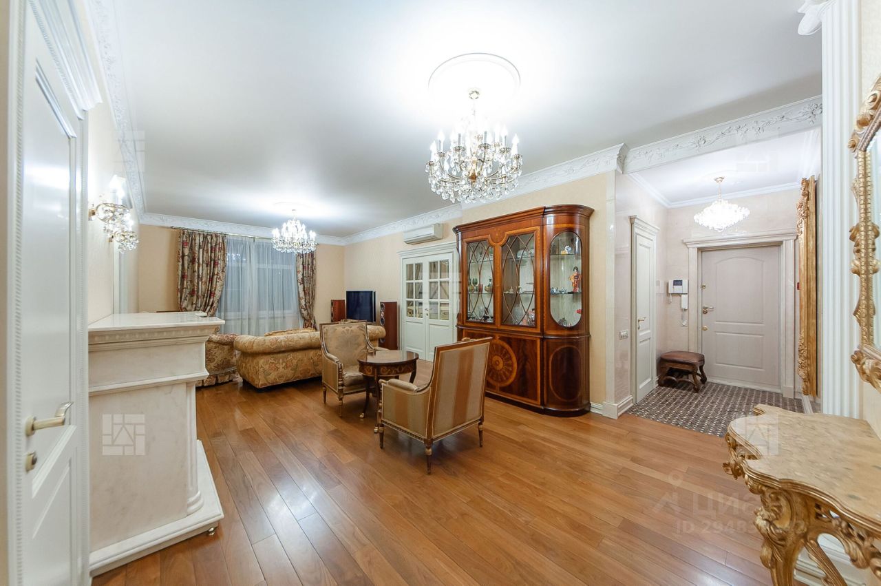 Лот: 8020. Сотрудничаем с риелторами. Бонус агенту. ЖК ''Шмитовский 16''. Предлагается элегантная квартира общей площадью 160,1 кв.м., состоящая из пяти комнат, что является редкостью в этом доме. В квартире выполнен качественный ремонт по индивидуальному дизайн проекту. Использованы качественные материалы: итальянский мрамор, паркет из американского ореха, эффектная гипсовая лепнина, сантехника премиальных марок. Квартира обставлена дизайнерской мебелью: Provasi. Franchesco Molon, кухня от известного итальянского бренда Arca Mobili. Функциональная планировка идеально подойдет для семьи с детьми: просторная гостиная с камином, отдельная кухня с застекленным балконом, четыре спальни, два санузла, гардеробная комната. Окна квартиры ориентированы на две стороны- улицу и двор. В подземном паркинге два машиноместа в собственности. Дом расположен в престижном динамично развивающемся районе- Красная Пресня, неподалеку от бизнес-центра ''Москва-Сити'' (где находится крупный торговый центр ''Афимолл''), парком ''Красная Пресня'' и Краснопресненской набережной. Этот район идеально подходит для жизни с точки зрения инфраструктуры: в пешей доступности магазины, рестораны и кафе, тренажерный зал, бытовые сервисы. Ближайшие станции метро ''Выставочная'', ''Деловой центр'' и ''Улица 1905 года''. В доме установлены новейшие современные инженерные системы, вентилируемые фасады, надежные лифты, которые спускаются в подземный паркинг. В комплексе обеспечена круглосуточная охрана на въезде на территорию, а также в каждом подъезде.