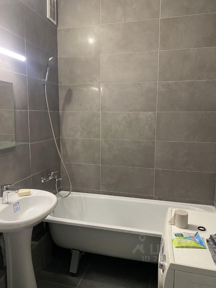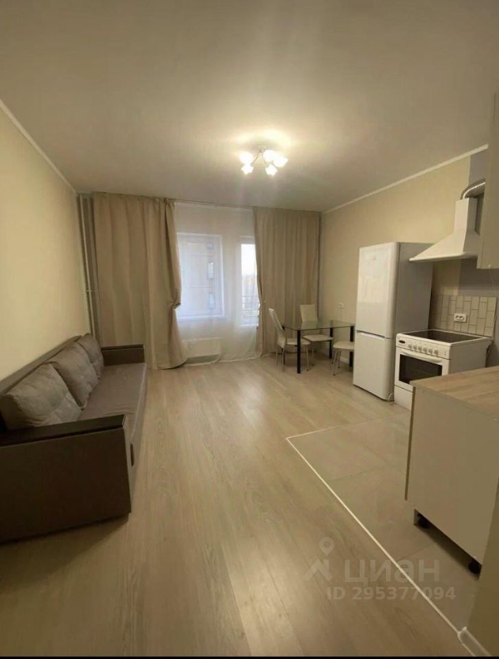 В 12 минутах пешком сдается квартира-студия 27 кв.м. на 15-м этаже, с мебелью ( диван, шкаф-купе, кухонный гарнитур, обеденный стол со стульями, комод и бытовой техникой (холодильник. электрическая плита и стиральная машинка). На длительный срок. В ванной комнате кафель. Вблизи магазины, школа, спортивный развлекающий центр, кафе и т.д. Депозитную сумму можно разбить.